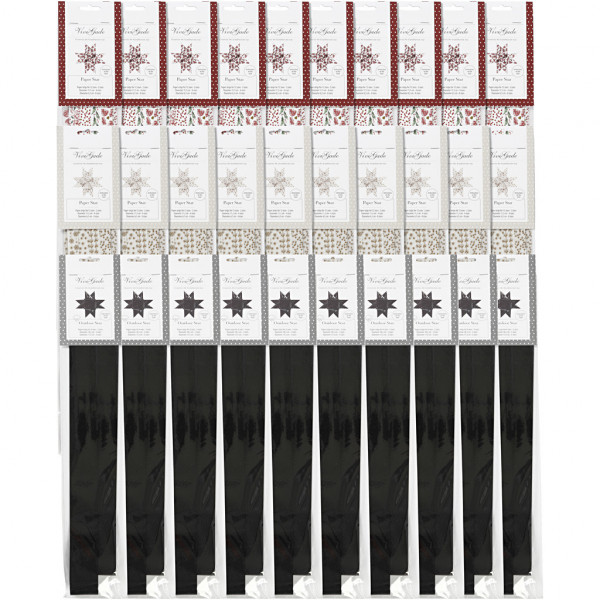 Papierstreifen für Fröbelsterne, B 15+25 mm, D: 6,5+11,5 cm, Samtpapier, 3x10Pck. [HOB-24344]