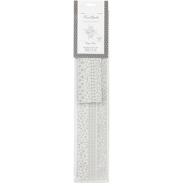 Papierstreifen für Fröbelsterne, B 15+25 mm, D: 6,5+11,5 cm, Weiß, Silber, Pergamentpapier, 48Streifen, L 44+78 cm [HOB-24363]