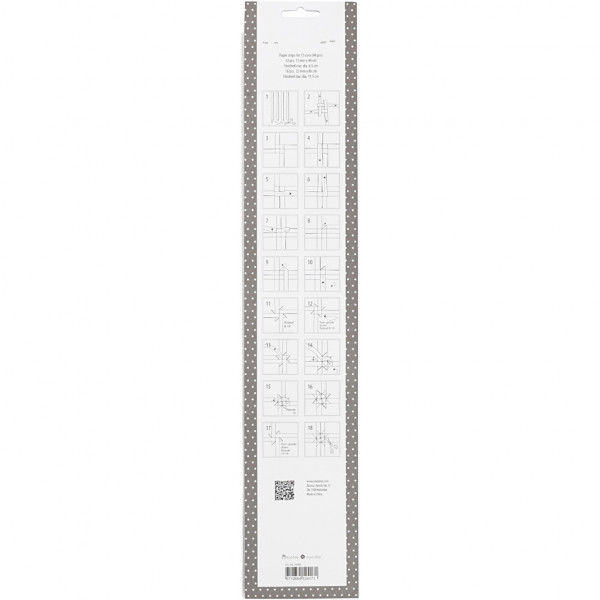 Streifen aus Pergament zum Flechten von Sternen in 2 Größen - mit einseitigem Design-Druck aus Metallic-Farbe von Vivi Gade. Durchmesser = fertige Sterngröße - Anleitung beiliegend.