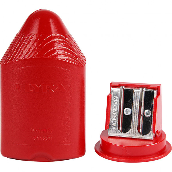 2-Loch-Anspitzer mit Auffangbehälter von LYRA für Standard- und Maxi-Stifte.