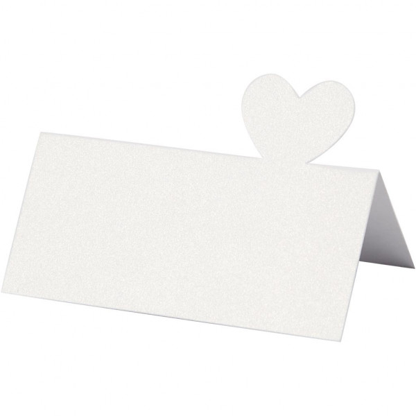 Tischkarte mit Perlmutt-Optik und aufstellbarem Herz.