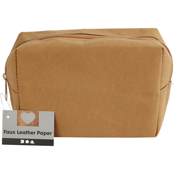 Spacious purse of heavyweight leather paper with zipper.