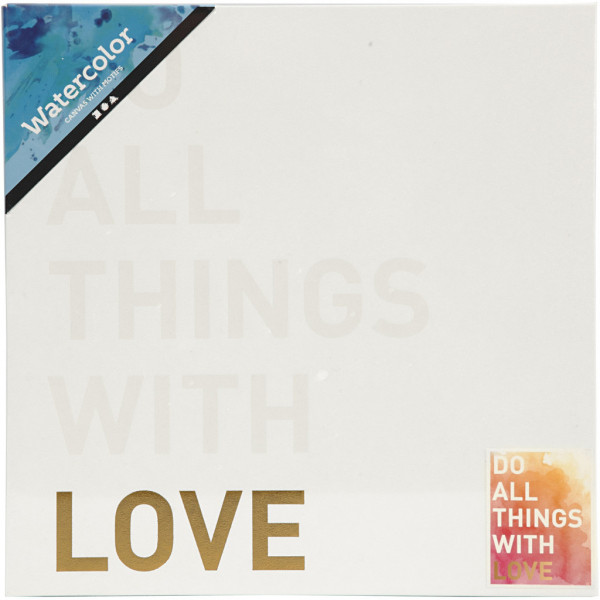 Leinwand für Aquarellfarbe - bedruckt mitt Goldmotiven, B 25,4 cm, H 25,4 cm, LOVE, 1Stck, Tiefe 2,54 cm [HOB-25776]