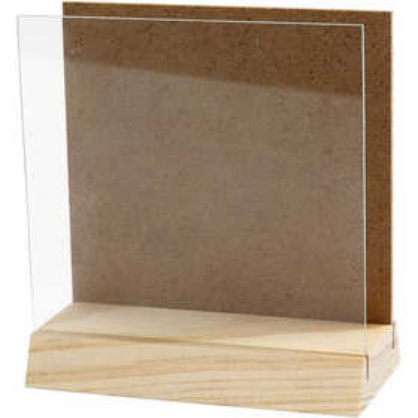 Halter mit Glasplatte, Größe 10x10 cm, Kiefernholz, 1Set [HOB-56747]