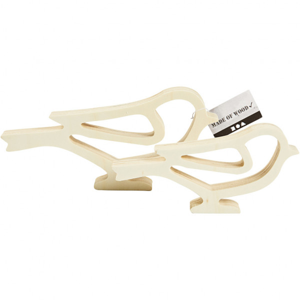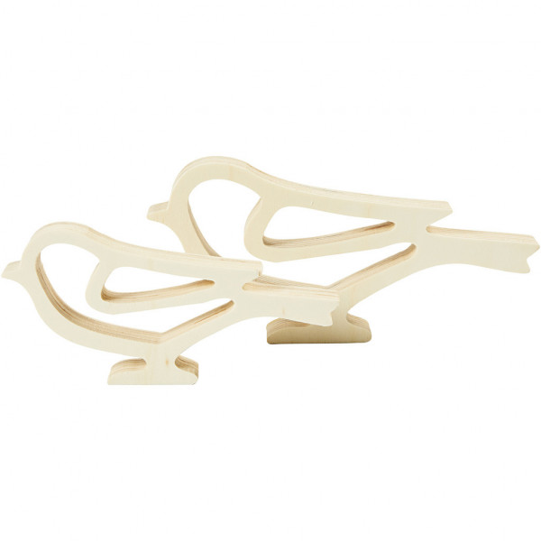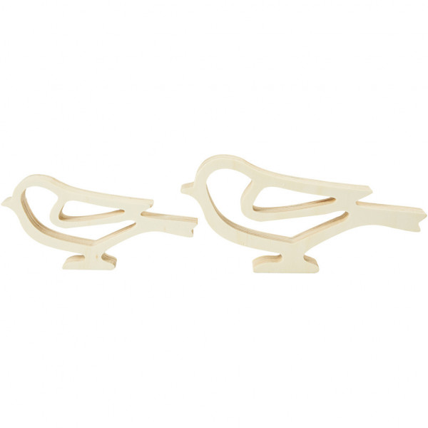 Holzvögel, H 8+10 cm, L 16,5+20,5 cm, Sperrholz, 2Stck., Tiefe 2 cm [HOB-57896]