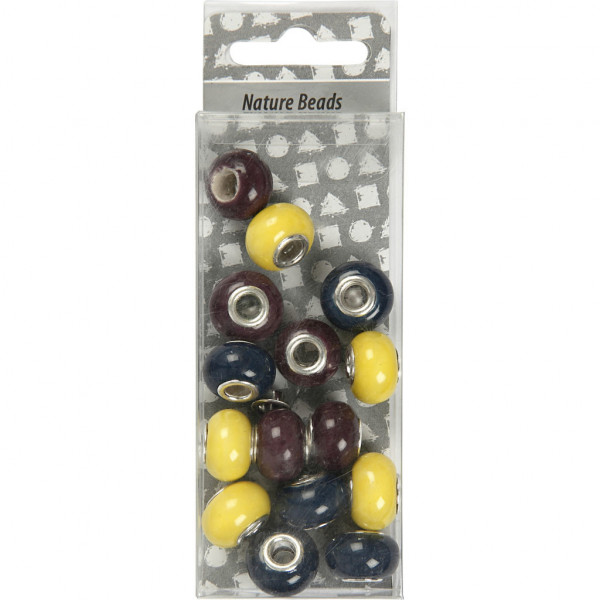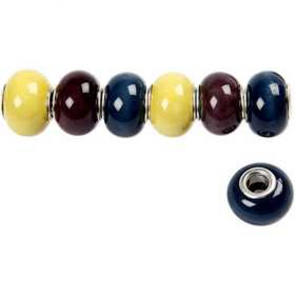 Trend Keramikperlen, Größe 11-15 mm, Lochgröße 5 mm, Dunkelblau, Gelb, Dunkellila, 15sort. [HOB-63655]