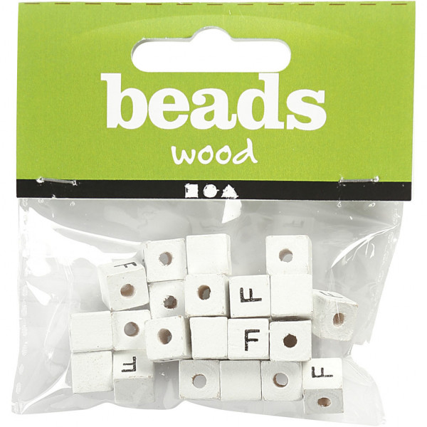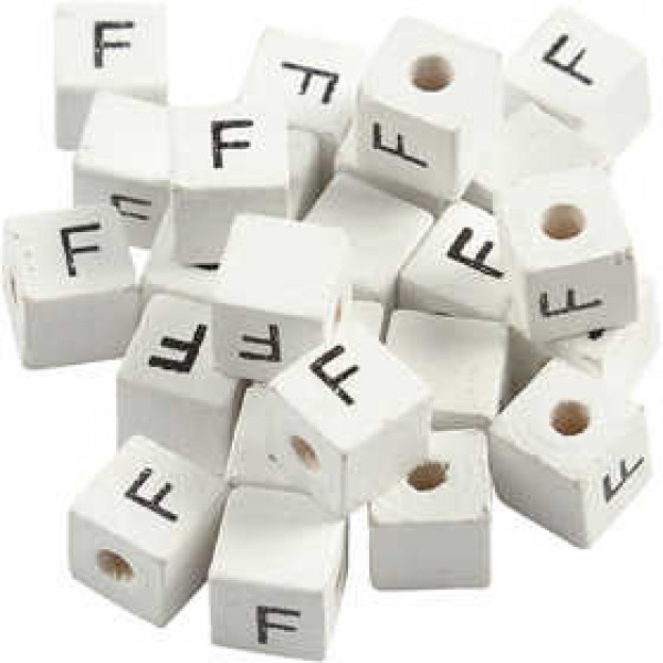 Buchstaben-Perle, Größe 8x8 mm, Lochgröße 3 mm, Weiß, Grass tree, F, 25Stck. [HOB-68956]