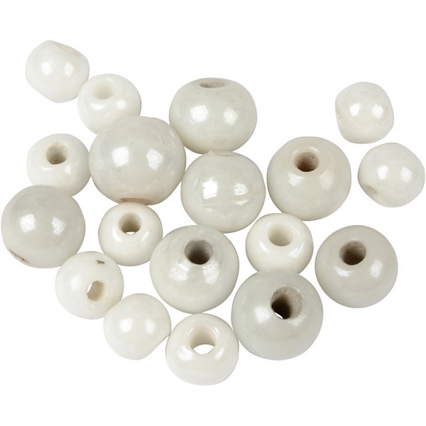 Glanzperlen, Größe 6+8+10 mm, Lochgröße 2,5 mm, Weiß, 300g [HOB-69748]