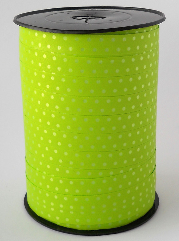 Kräuselband mit Punkte Lindgrün 10 mm x 225 mtr (1 Rolle) [HV-PLS10LG]