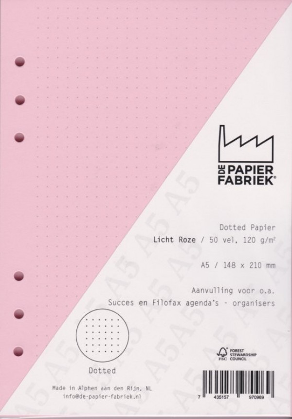 Zusatz A5 Briefpapier mit Succes, Filofax und Kalpa Tagebüchern / Planern - Format A5 - 50 Blatt (100 Seiten) - Dotted Hell Pink Gefarbt Papier - 120 g/m2. Preis ist per 50 Blatt