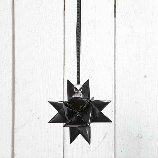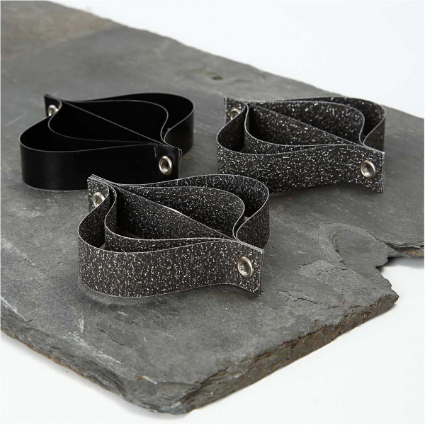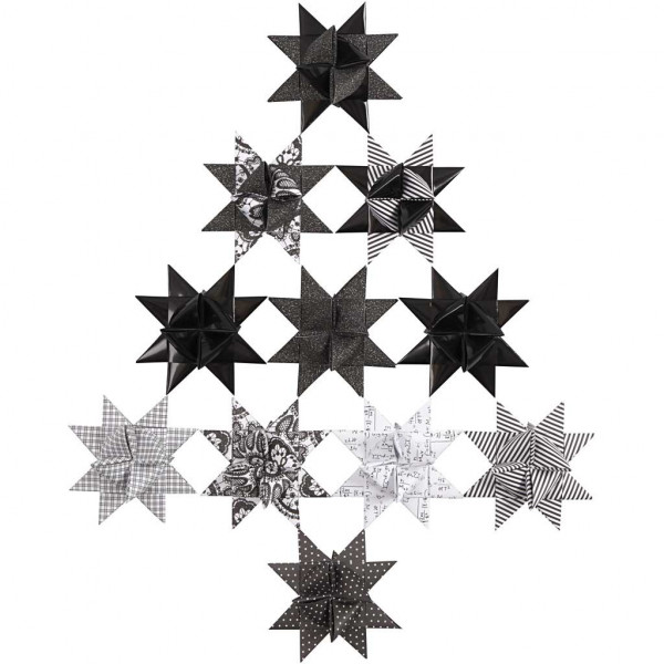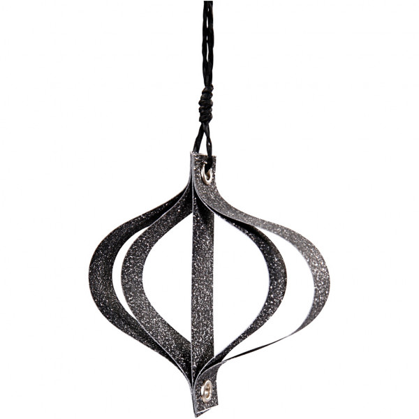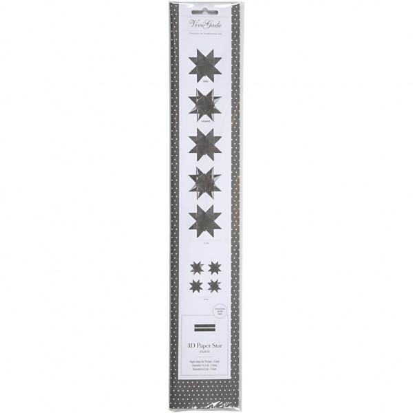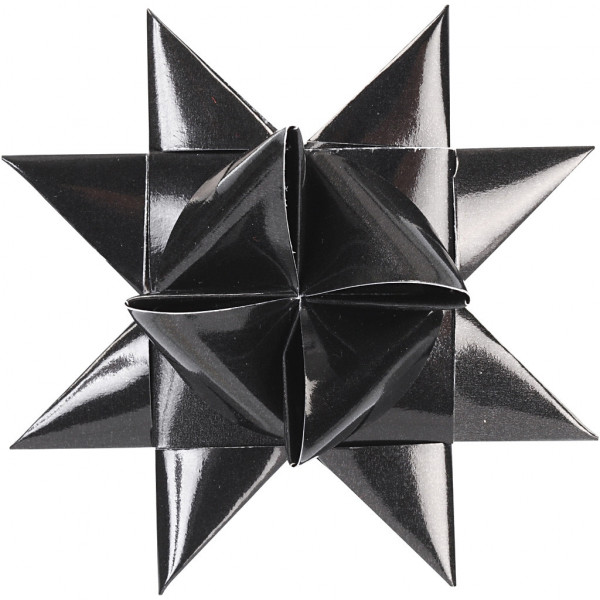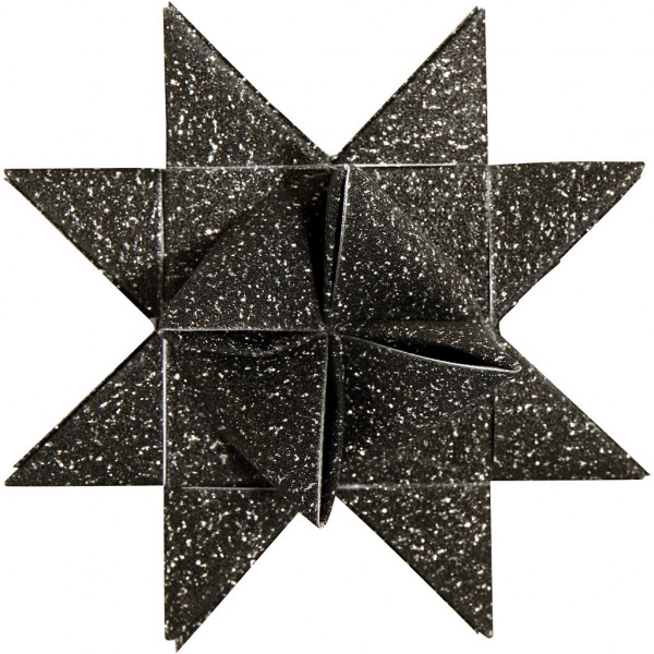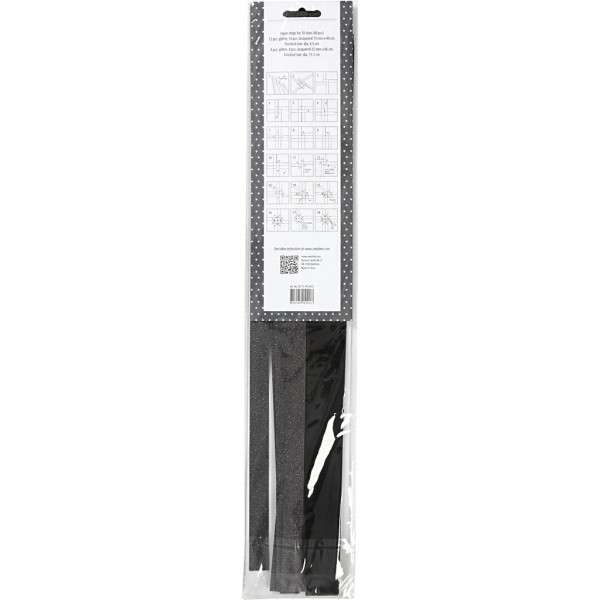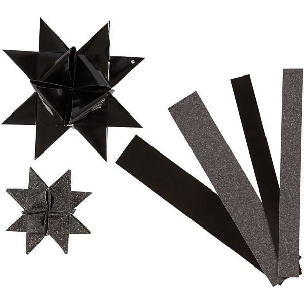 Papierstreifen für Fröbelsterne, B 15+25 mm, D: 6,5+11,5 cm, Schwarz, Glitter und Lack, 40Streifen, L 44+78 cm [HOB-20773]