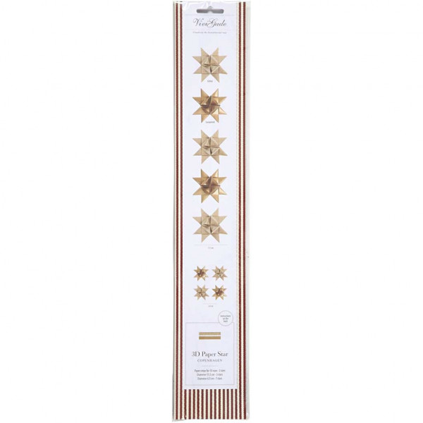 Papierstreifen für Fröbelsterne, B 15+25 mm, D: 6,5+11,5 cm, Gold, Glitter und Lack, 40Streifen, L 44+78 cm [HOB-20776]