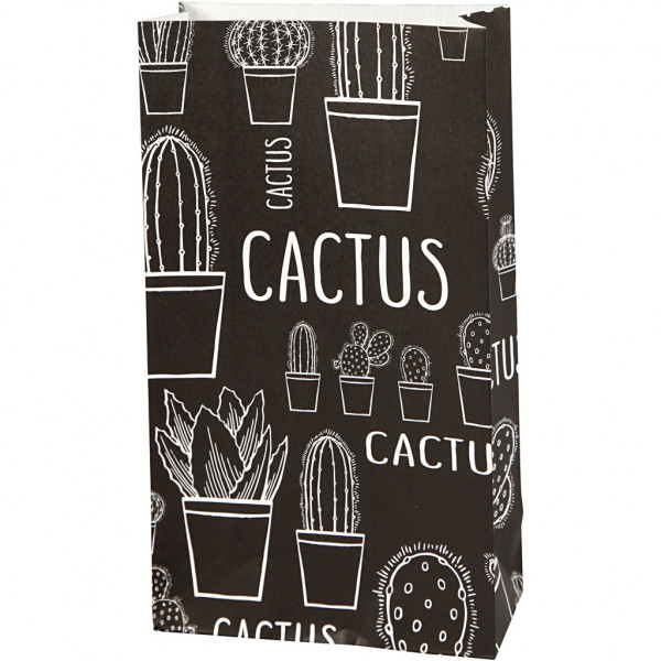 Papiertüten, H 21 cm, Größe 6x12 cm, Kaktus, 10Stck., 80 g [HOB-23136]