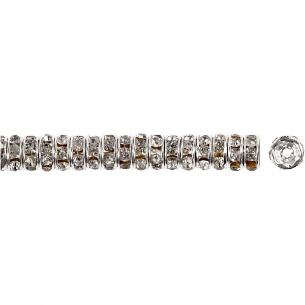 Strasssteinrondelle, D: 6 mm, Lochgröße 1,2 mm, Versilbert, 50Stck. [HOB-601651]