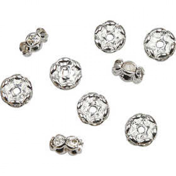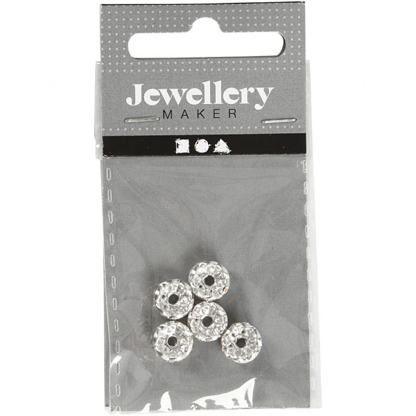 Strasssteinrondelle, D: 8 mm, Lochgröße 2 mm, Versilbert, 5Stck. [HOB-601870]