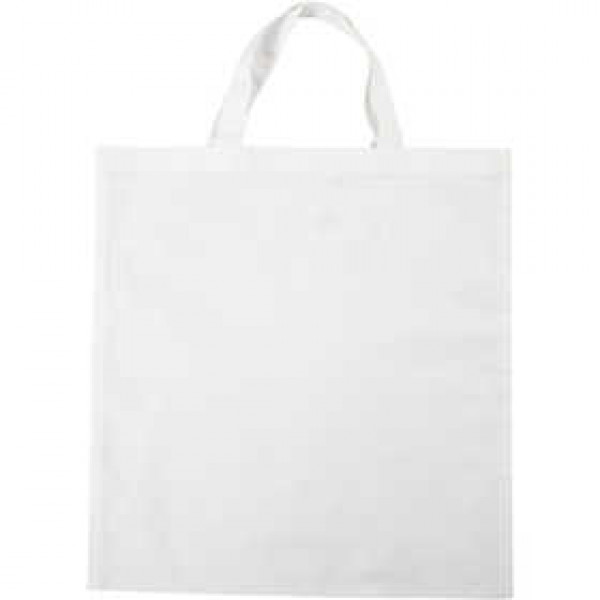 Shopping bag made of 100% cotton with short handles.