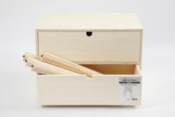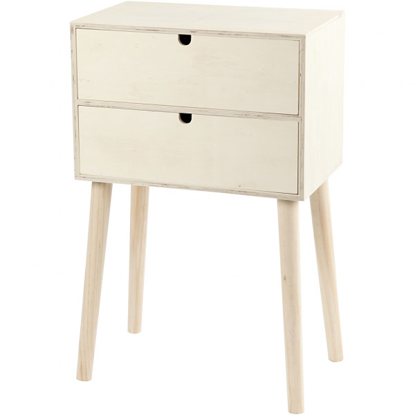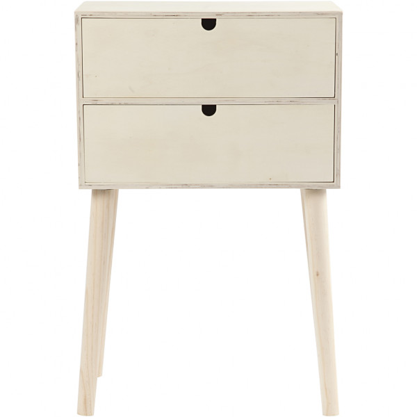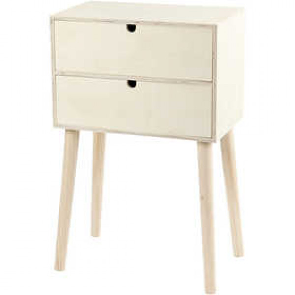 Drawer furniture in light wood on tall legs and with 2 removable drawers. Can be used as an entrance furniture or bedside table. Supplied unassembled.