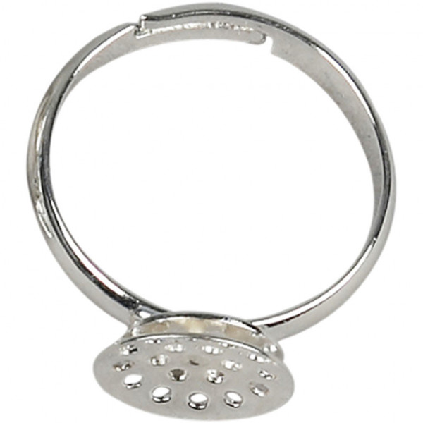 Fingerring mit Siebplatte, D: 17-20 mm, Versilbert, 15Stck. [HOB-61315]