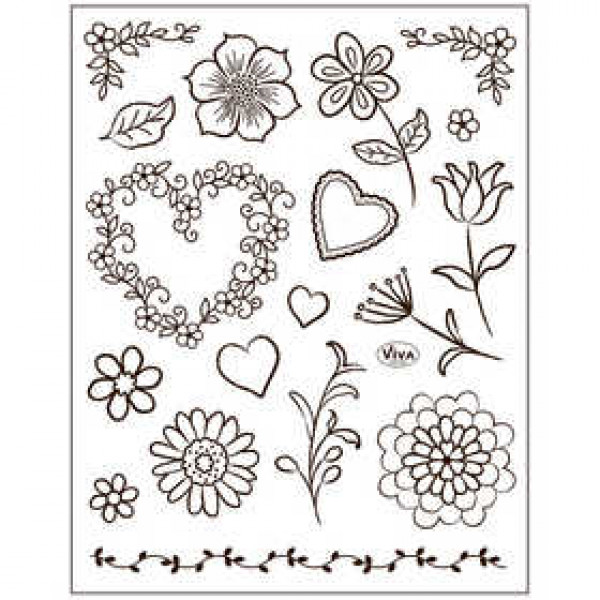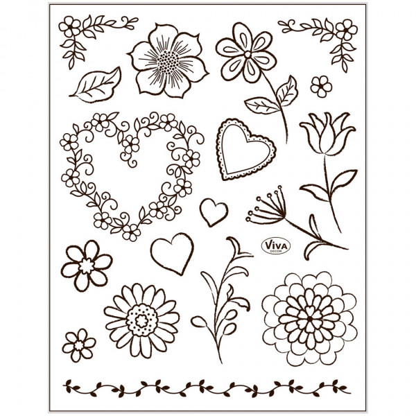Silikon-Sticker / Stempel, Blatt 14x18 cm, Blumen, 1Bl. [HOB-24422]