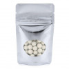 Standbodenbeutel Silber 8x5x13cm | 28 Gramm mit ovalem Fenster (100 Stück) [ZBGMO1S]