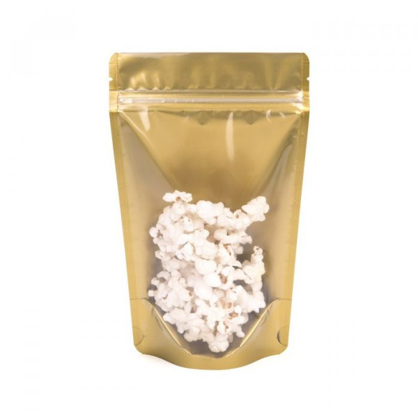 What better way to have your products be seen than with crystal clear packaging? ZBGGC1 is part of our line of Stand Up Zipper Pouches that feature a clear front panel to showcase products and a shiny gold interior and back panel to draw attention. This small pouch measures 80 x 50 x 130mm with a usable space measuring 70 x 45 x 95mm and holds 1oz/28g of dry goods. Small in size, but big in features, this pouch offers an airtight, resealable zipper to lock in freshness and tear notches for easy access when heat sealed. Place a label or sticker on the back with branding and nutrition information.