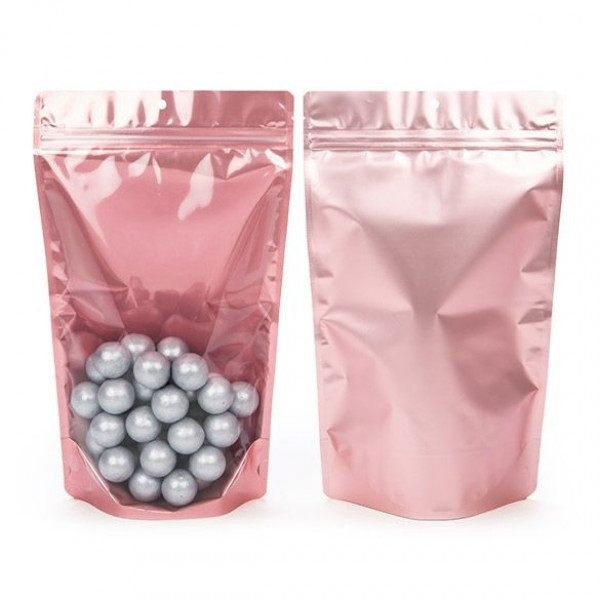 Standbodenbeutel Transparent/Rosé Gold 17,1x8,9x28,6cm cm | 340 Gramm (100 Stück) [ZBGRG4]
