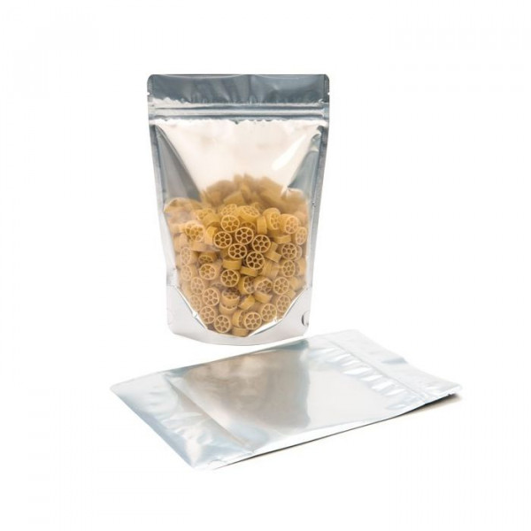 ZBGB46 is our 120 x 75 x 185mm Black Stand Up Zipper Pouch, ideal for packaging dry goods and non-refrigerated items. This pouch features a silver interior and a clear front panel that runs the length of the bag to allow products to be prominently displayed. This self-supporting pouch holds 3-4 ounces/85-114 grams (based on whole coffee beans). Ideal for mixes for energy/protein drinks, pancake and waffles, cookies, and for packaging cereal, coffee beans, and grains. Laminated with blending materials to provide high barrier protection. Flavors and aromas stay inside the bag. An airtight resealable zipper keeps products fresh, while easy tear-away notches provide easy access to contents. Pouches are heat sealable using a heat sealer.