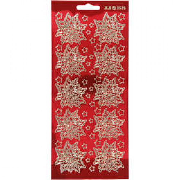 Sticker, Blatt 10x23 cm, Gold, Transparent Rot, Weihnachtssterne, 1Bl. [HOB-170144]