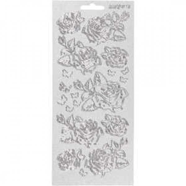 Sticker, Blatt 10x23 cm, perlemor sølv, Silber, Rosen, 1Bl. [HOB-170162]