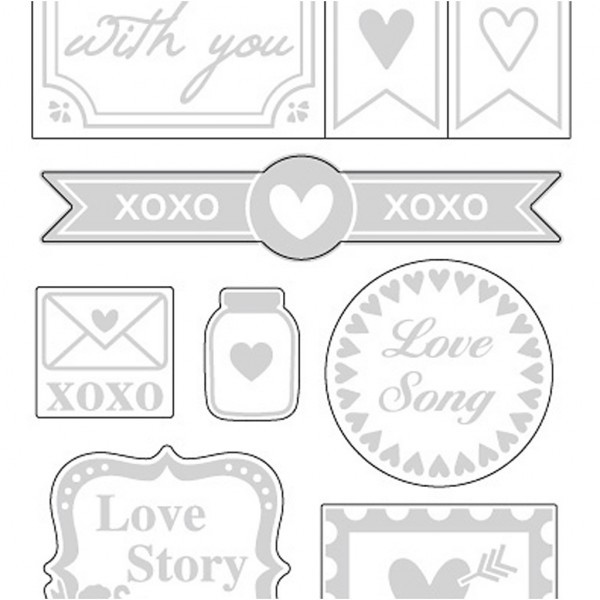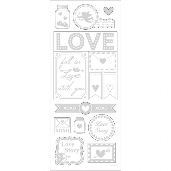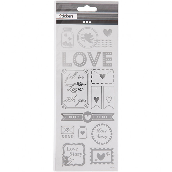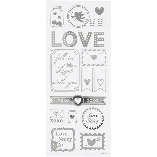 Sticker 'Love', Blatt 10x24 cm, ca. 14 Stck, Silber, Love, 1Bl. [HOB-29142]