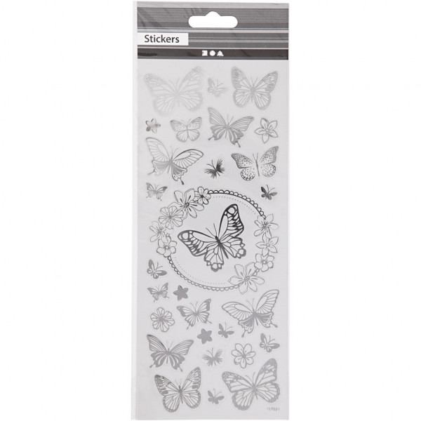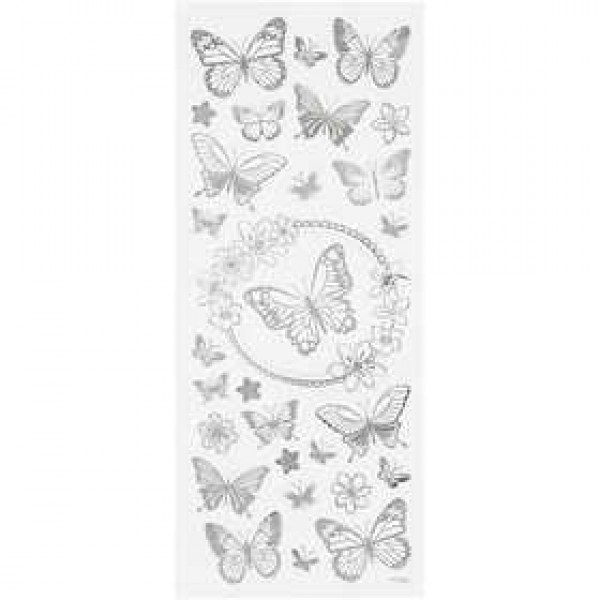 Sticker Schmetterling, Blatt 10x24 cm, ca. 28 Stck, Silber, Schmetterling, 1Bl. [HOB-29143]