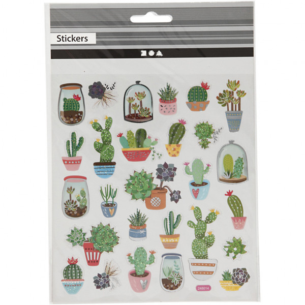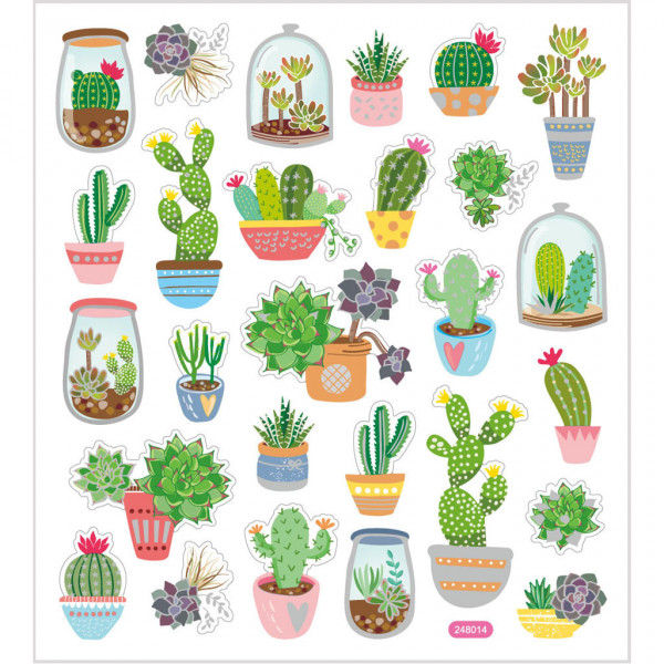 Sticker mit Kakteen, Blatt 15x16,5 cm, ca. 27 Stck, Kakteen, 1Bl. [HOB-29139]