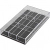 Transparentes Acryl - Boden mit schwarzem Stoff ausgelegt - 9 feste Fächer.