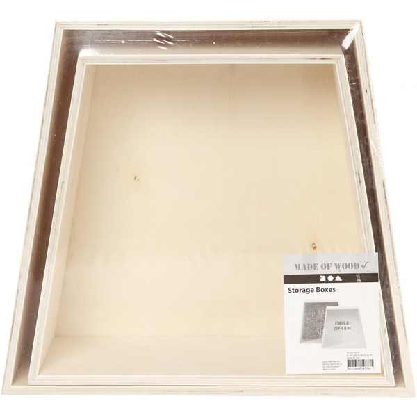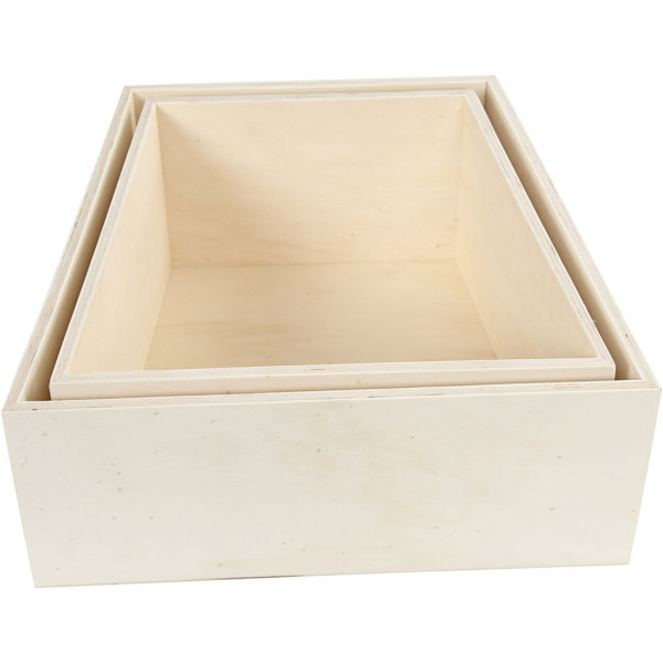 Aufbewahrungskästen, sich verjüngende Vierecke, H 24,5+28 cm, B 27+31 cm, Sperrholz, 2Stck., Tiefe 12,5 cm [HOB-56159]