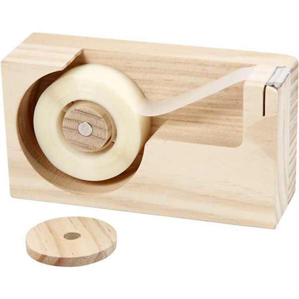 Klebeband Abroller, L 14,3 cm, Lochgröße 2,5 cm, Kiefernholz, 1Stck [HOB-55771]