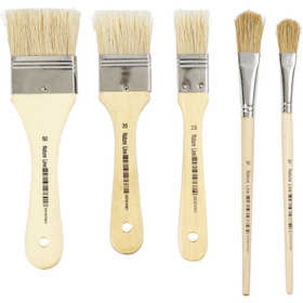 Flach, mit hellen Schweineborsten, kurzer Holzgriff - je 2 Stck. in 5 Größen.