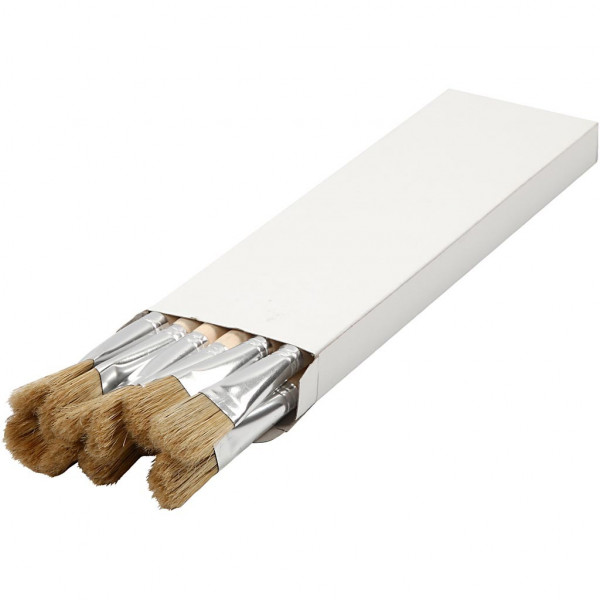 Flach, mit hellen Schweineborsten, kurzer Holzgriff - ideal zum Auftragen von Lack und Farbe.