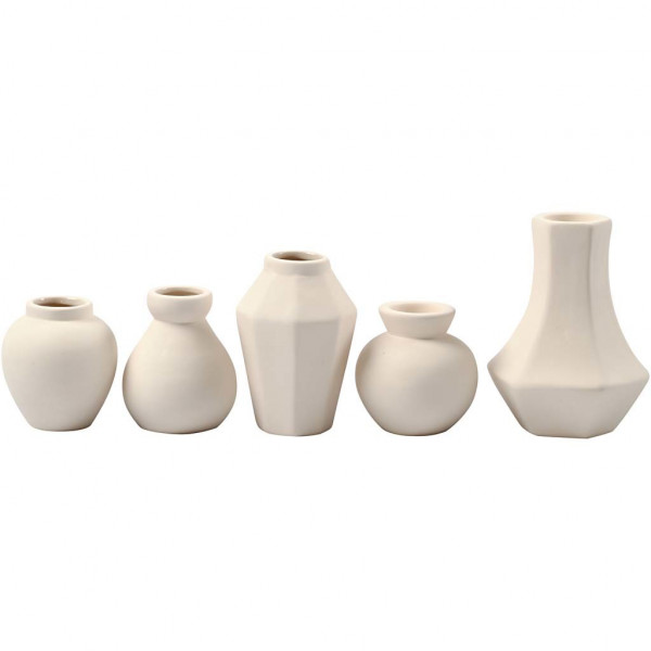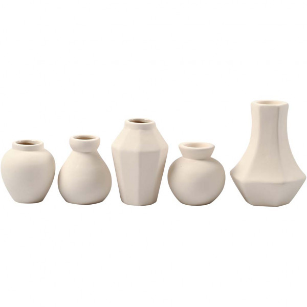 Vasen und Kerzenhalter, H 7+10+12 cm, Lochgröße 2,45 cm, Weiß, 5Stck. [HOB-50556]