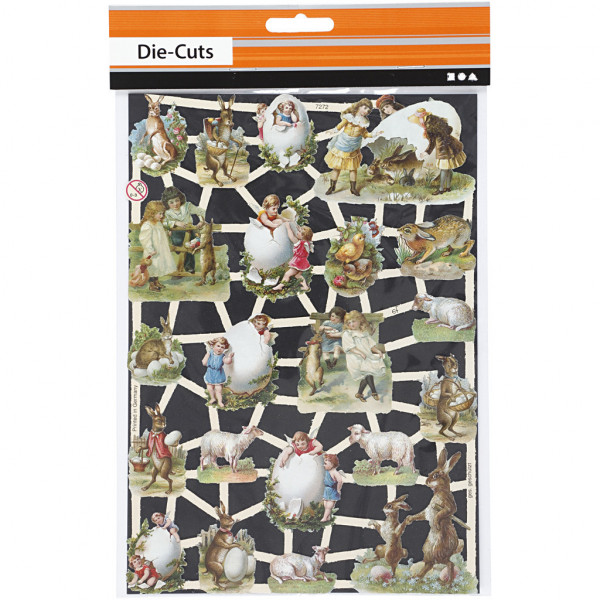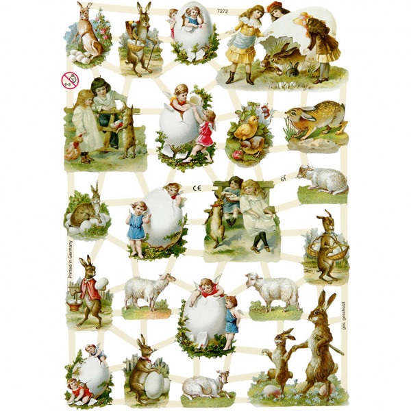 Vintage-Glanzbilder, Blatt 16,5x23,5 cm, Ostern auf dem Land, 3Bl. [HOB-19323]