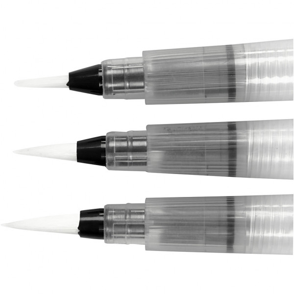 Runde Pinsel mit feinen Nylon-Borsten und hohlem Schaft aus Plastik - Wasser einfüllen und mit leichtem Druck auf den Schaft beim Malen Wasser nach und nach entleeren - perfekt geeignet zum Malen mit Aquarell- und Wasserfarben.