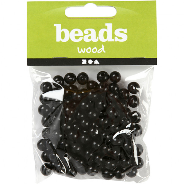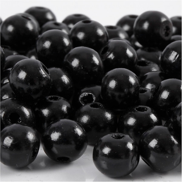 Holzperlen, D: 10 mm, Lochgröße 3 mm, Schwarz, 20g, ca. 70 Stck [HOB-570595]