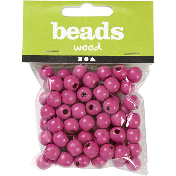 Holzperlen, D: 12 mm, Lochgröße 3 mm, Pink, 22g, ca. 40 Stck [HOB-570416]