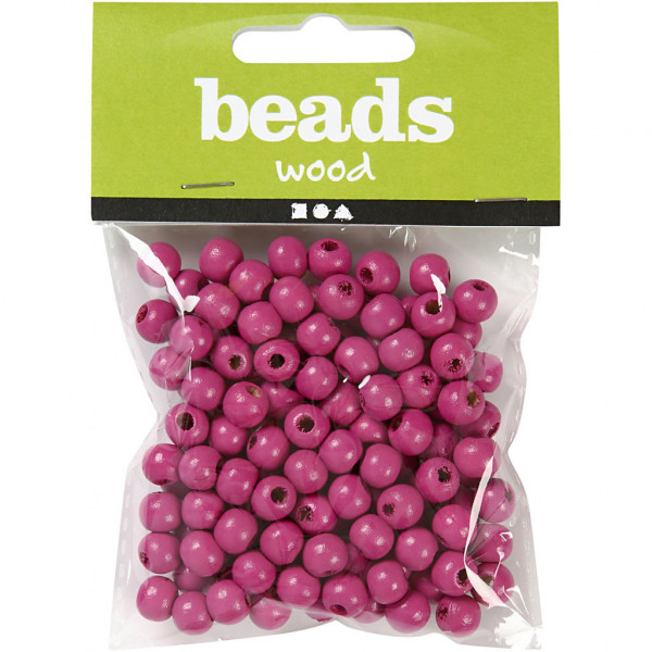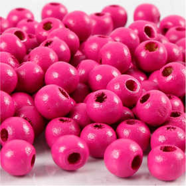 Holzperlen, D: 8 mm, Lochgröße 2 mm, Pink, 15g, ca. 80 Stck [HOB-570496]