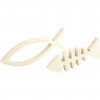 Holzfische aus hellem Holz - ein Fisch in Skelettform, ein Fisch als Silhouette.
