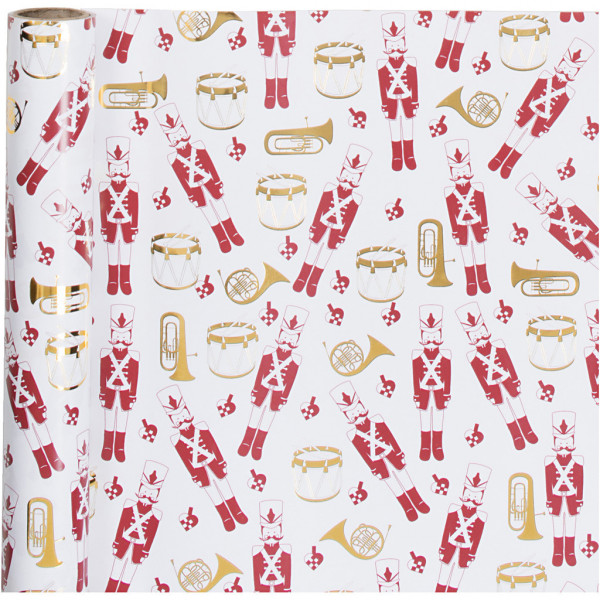 Geschenkpapier, B 57 cm,  80 g, Weiß, Gold, Rot, Nussknacker, 75m [HOB-19180]